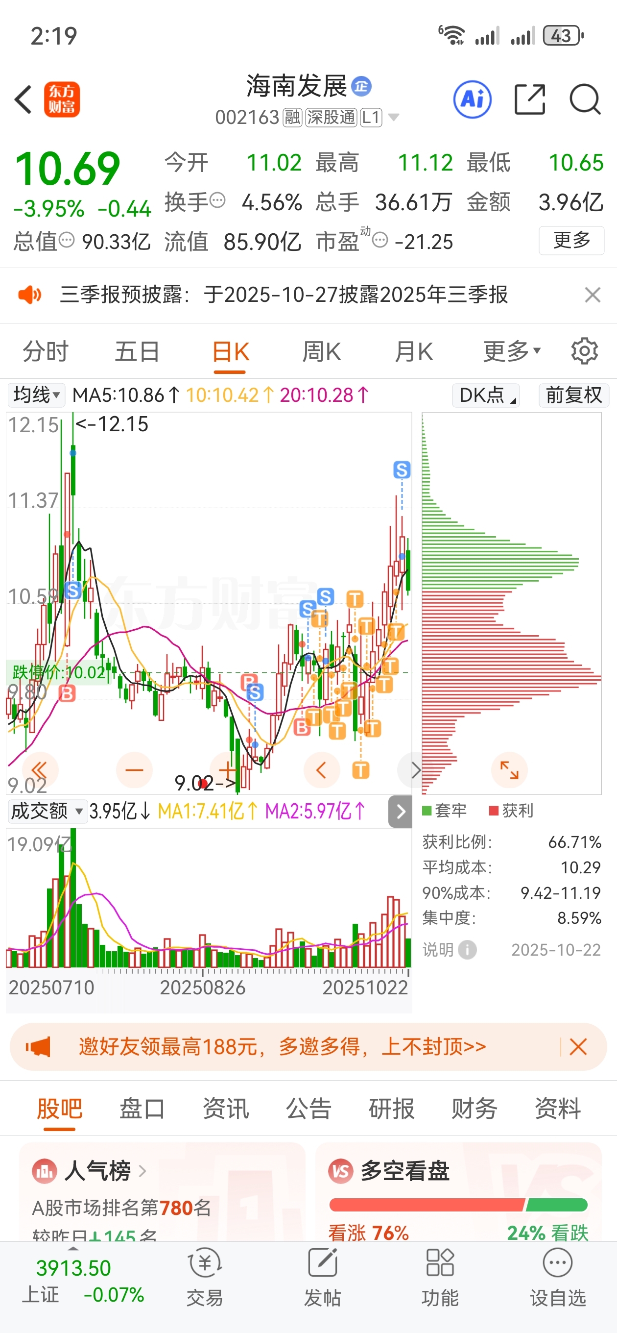 $海南发展(SZ002163)$ 昨天以为卖亏了