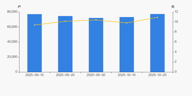 截至2025年10月20日,公司最新总股本为8.45亿股,其中流通股本为8.04亿股。户均持有流通股数量由上期的1.1万股下降至1.04万股,户均流通市值11.36万元。