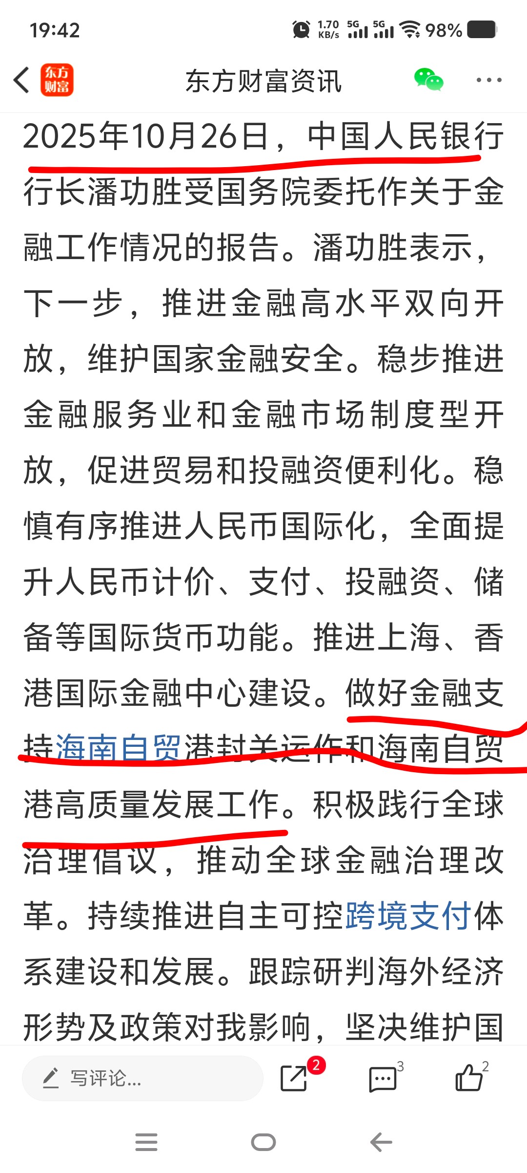 很牛很重磅:实施自由贸易试验区提升战略,高标准建设海南自由贸易港。