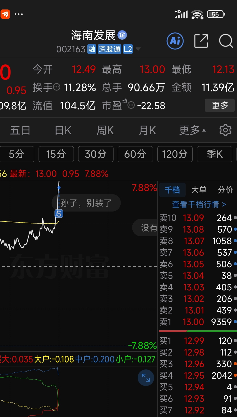 $海南发展(SZ002163)$ 先卖一半,太吓人了