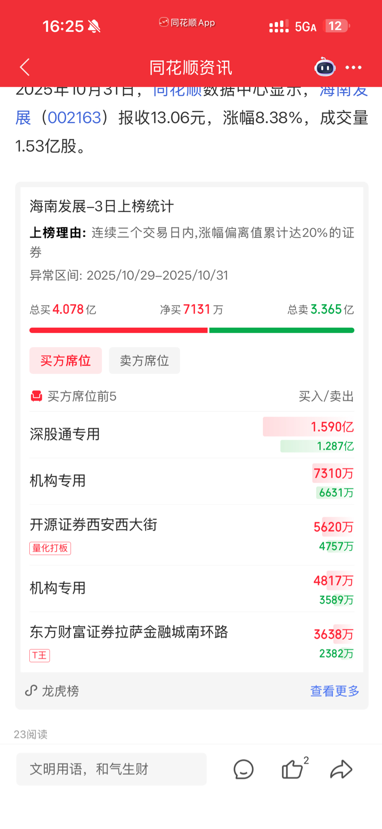 $海南发展(SZ002163)$ 怎么看,北上和机构在买
