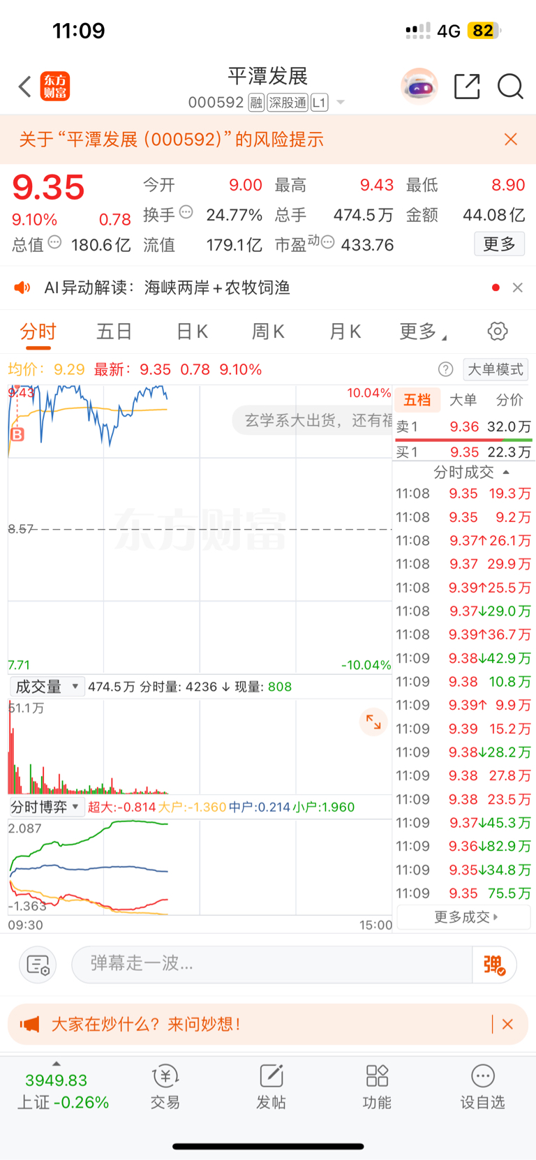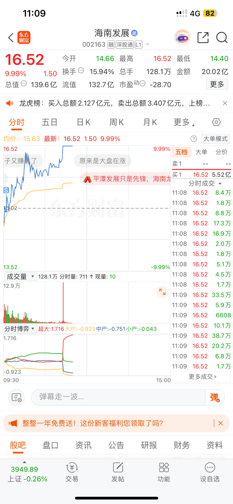 昨天出了平潭进的海南知道海南今天会长但是看到平潭开盘快速上板又把海南出了打板了平
