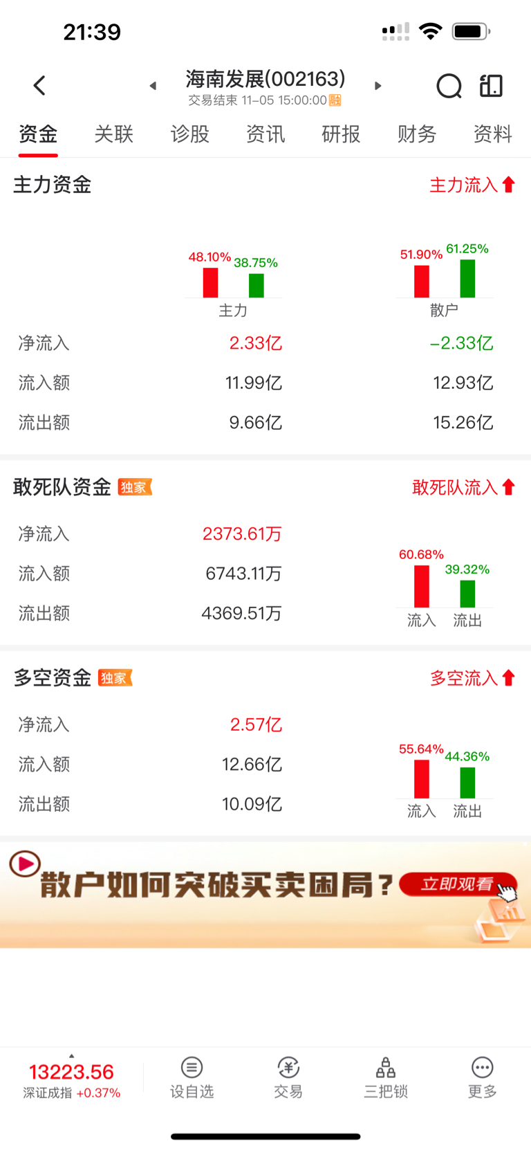 $海南发展(SZ002163)$ 主力牛啊,今天洗出散户-2.3亿元