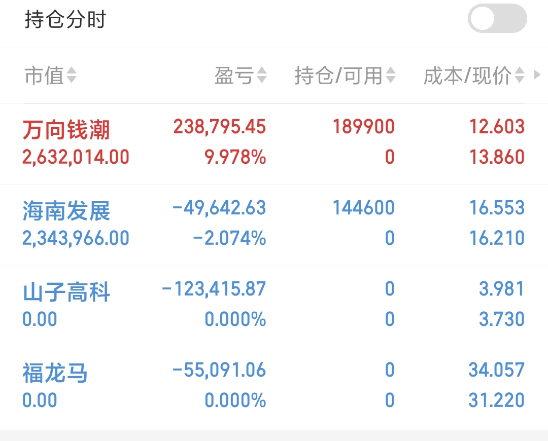 今作$海南发展(SZ002163)$ 临近封关,还能再喝点汤吗?不会进来就挨打吧,换手也还行啊,抛压不大了,水下该补仓补仓。$万向钱潮(SZ000559)$ 三天回踩是日均线,均有强承接,今天直接拉板,30亿封单,主升无疑,小鹏机器人发布,真就利好万向了吗?顺利封板,今天也是拿了一个涨停。
