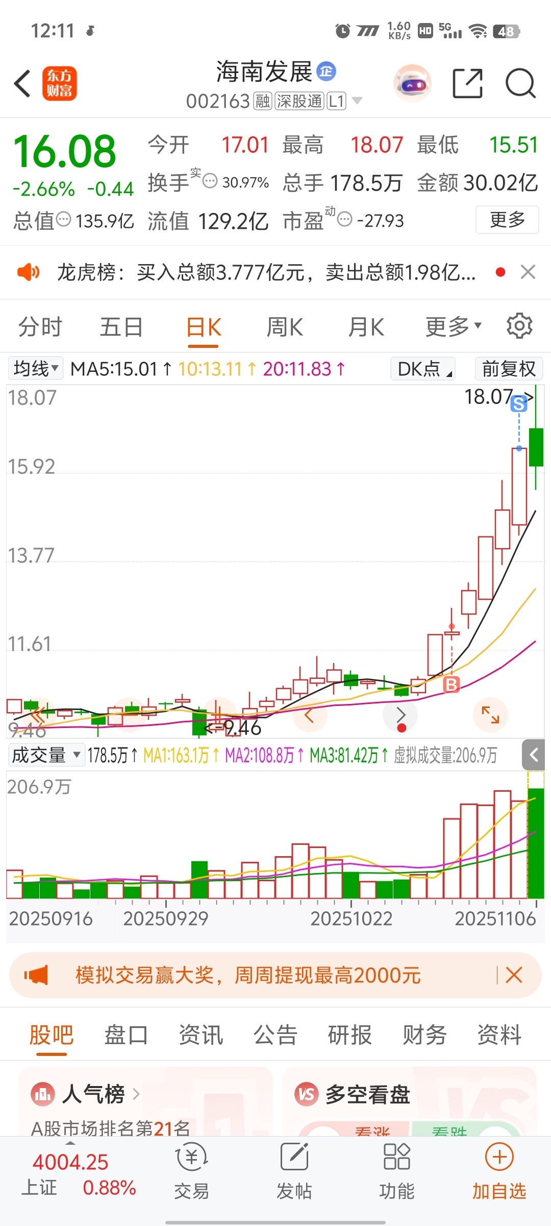 $海南发展(SZ002163)$
