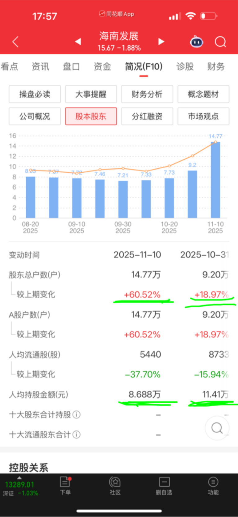 $海南发展(SZ002163)$ 全是散户,这股东人数到底是怎样增长成这地步。人均持股18多万变人均持股8万多,持仓分散。