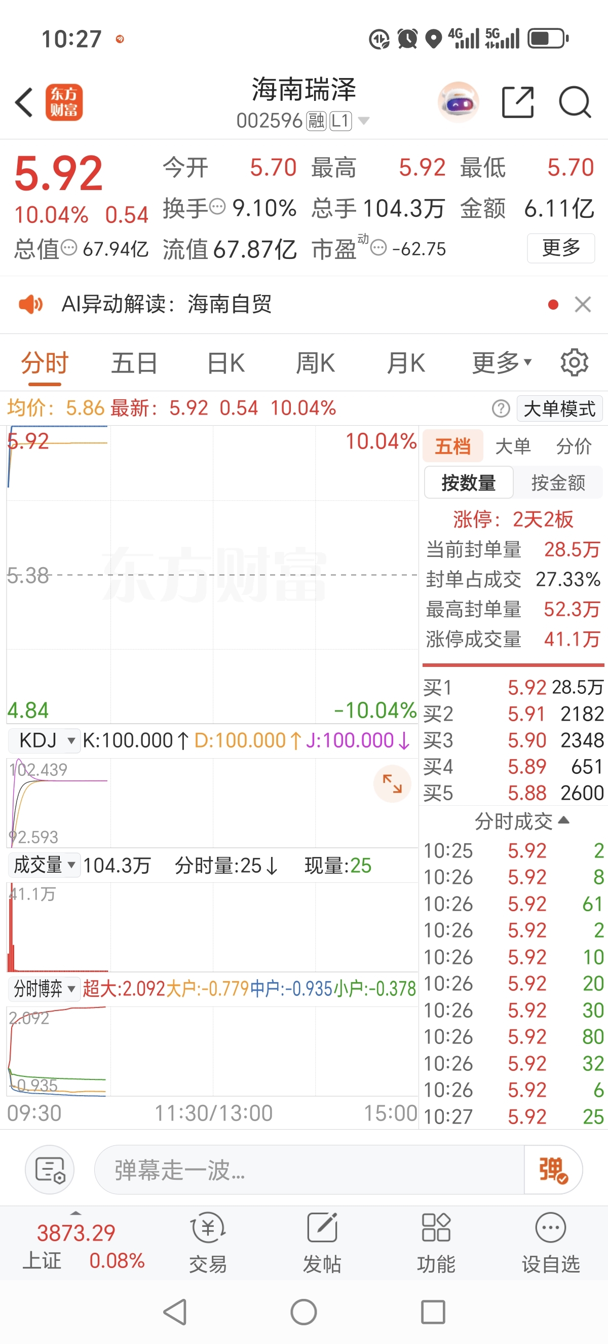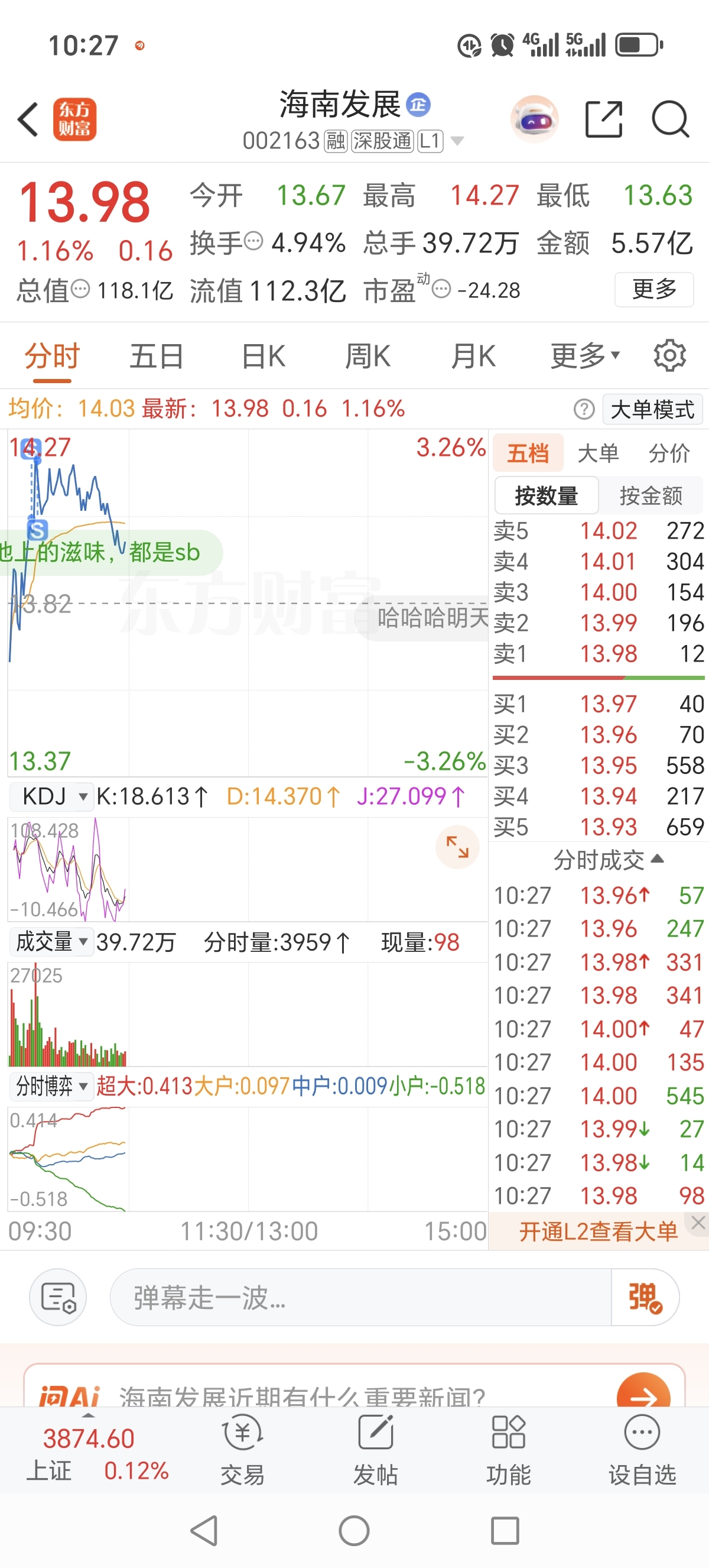 海南两个字的都涨停了,就海南这个什么发展这个杂毛股!不割还要耗死你们~