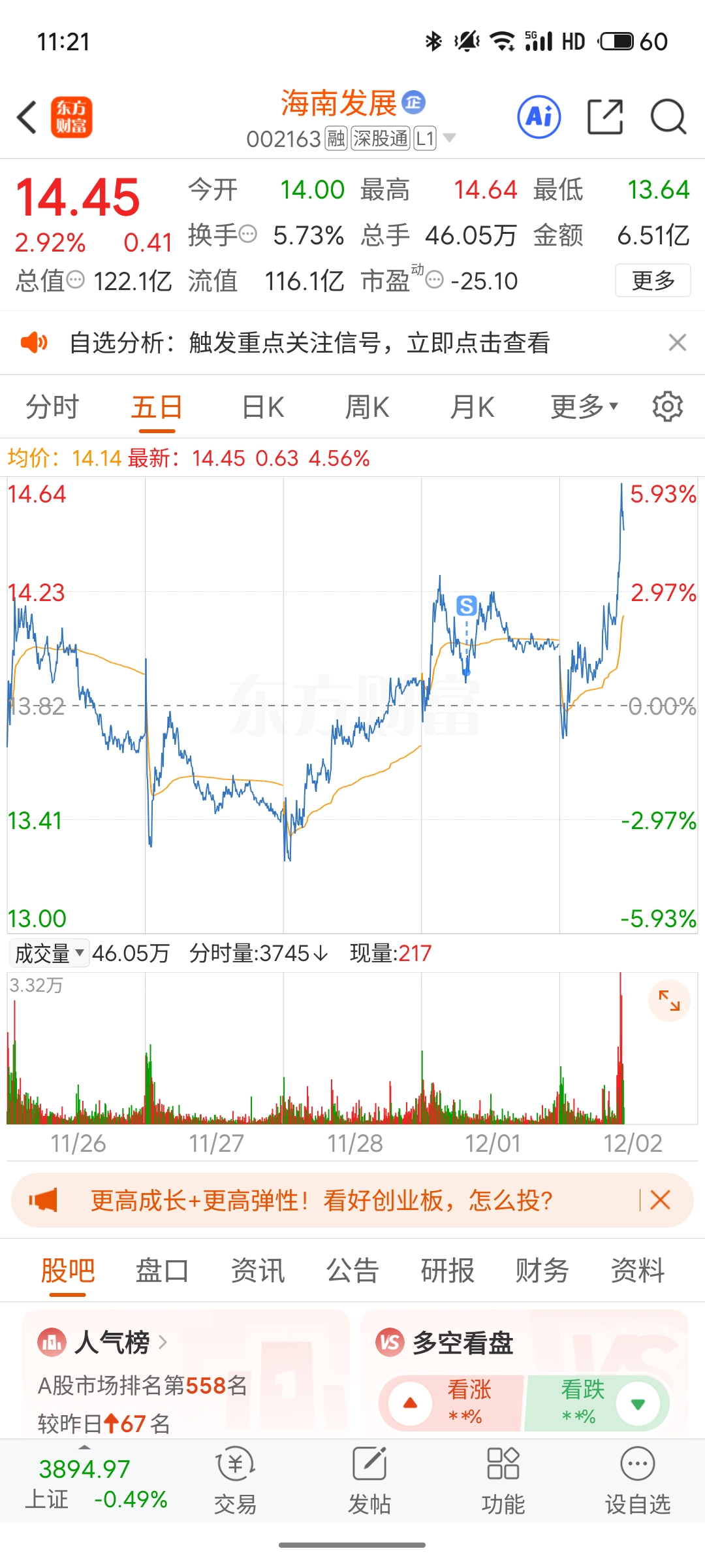 $海南发展(SZ002163)$ 好,很好。我卖了你就拉是不