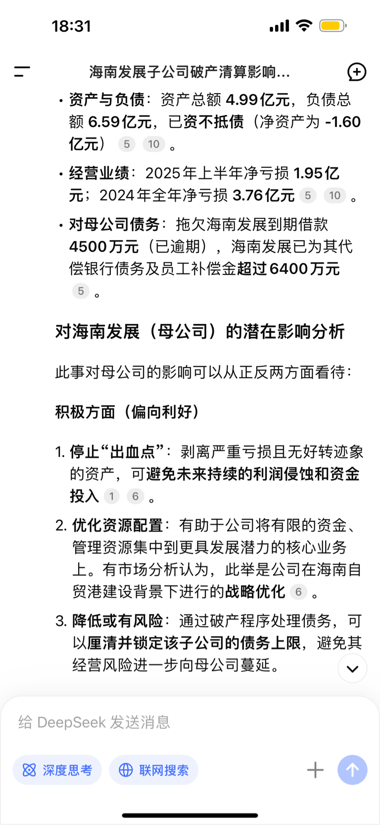 $海南发展(SZ002163)$ 子公司破产清算是把亏损业务剥离 及时止损 战略调整 小白们看看吧