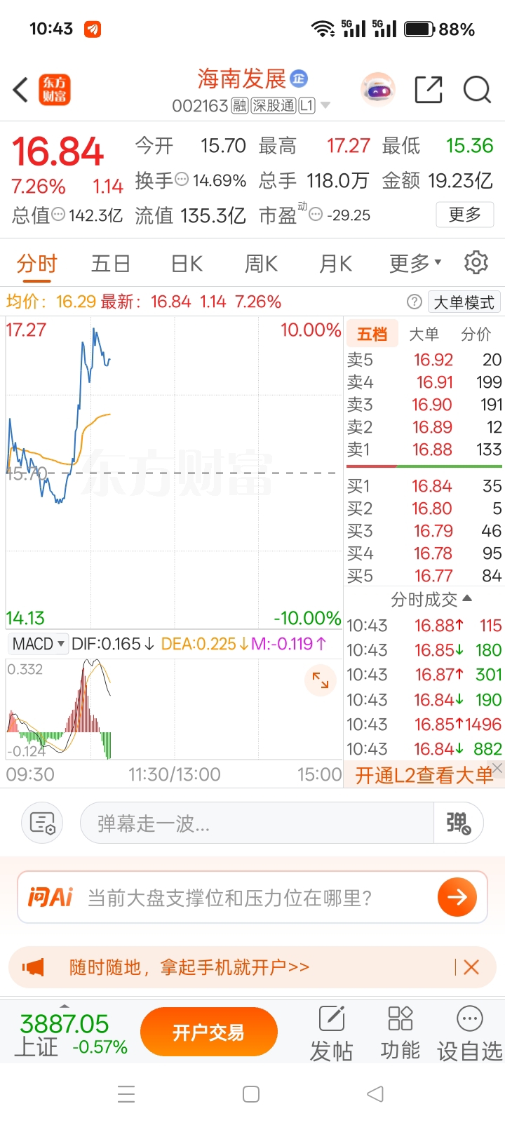 $海南发展(SZ002163)$ 前两天通知15.5附近上车的朋友,今天可以格局吃肉了,兄弟们,既然相信就不要怕,守得云开见月明!