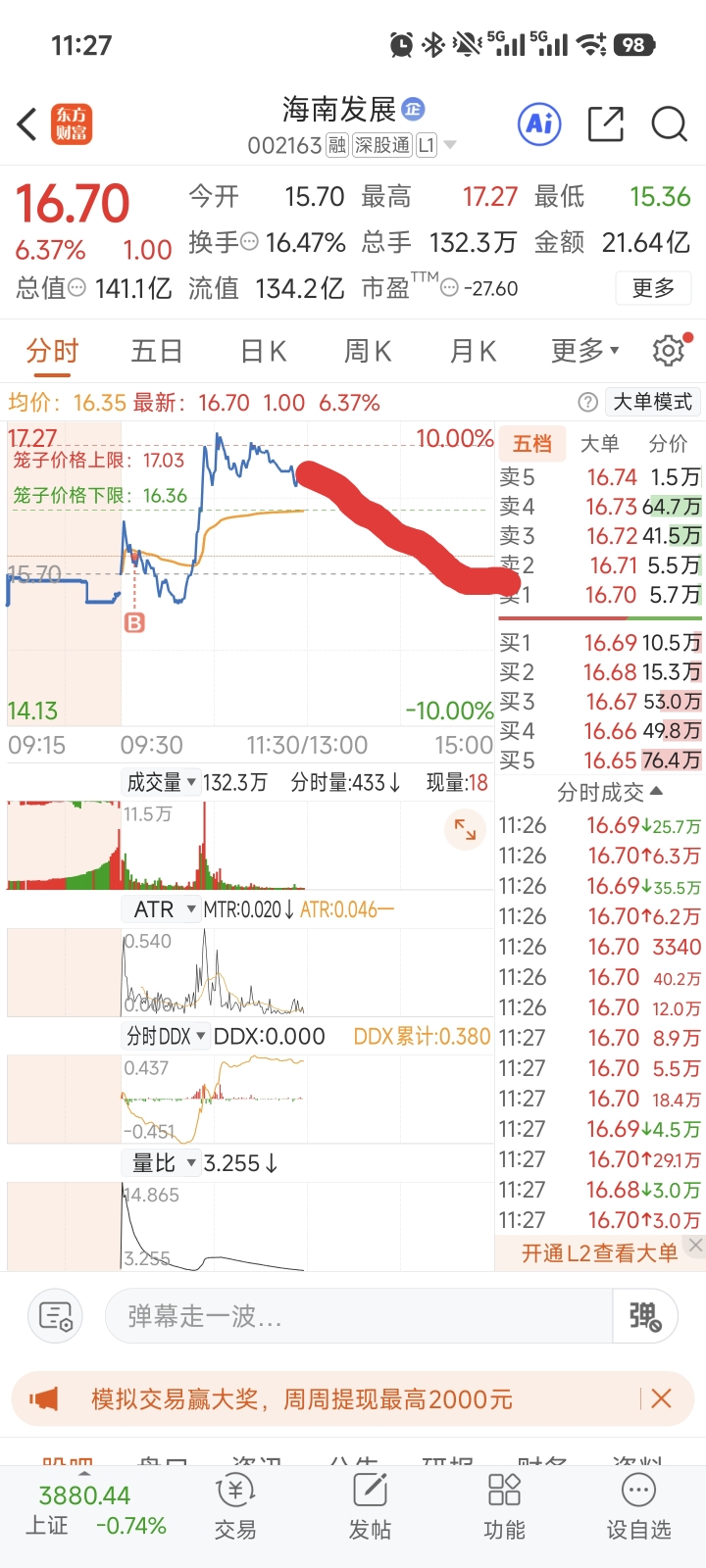 $海南发展(SZ002163)$ 要是这样走,我就笑了,这就是量化来了!