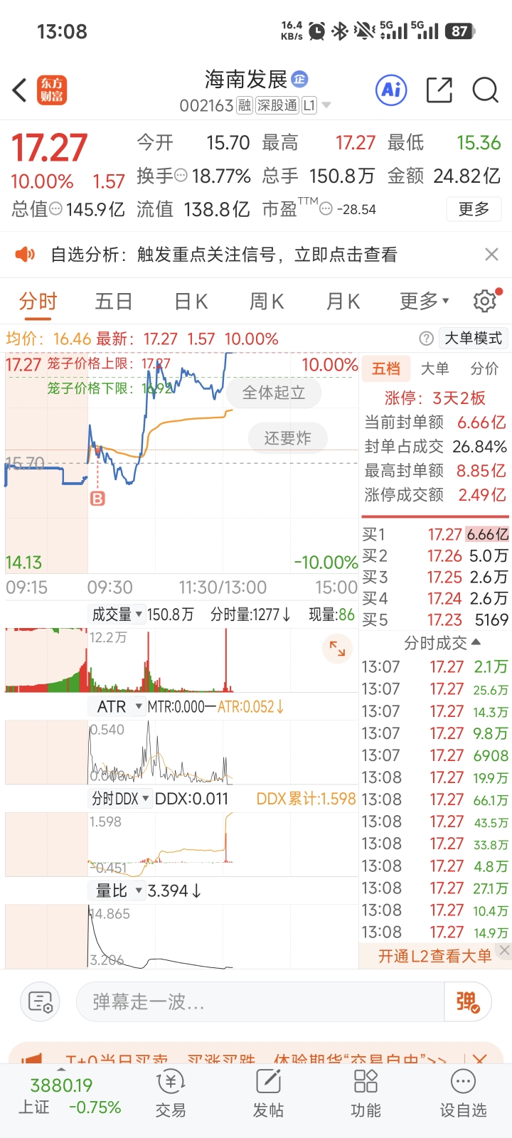 $海南发展(SZ002163)$ 在有三个板!!韭菜们