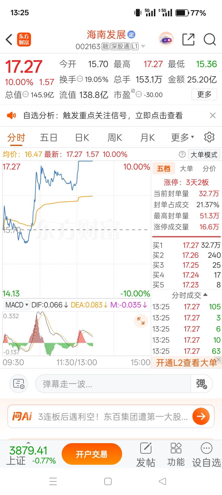 $海南发展(SZ002163)$ 继续封板。不错,兄弟们拿好等待