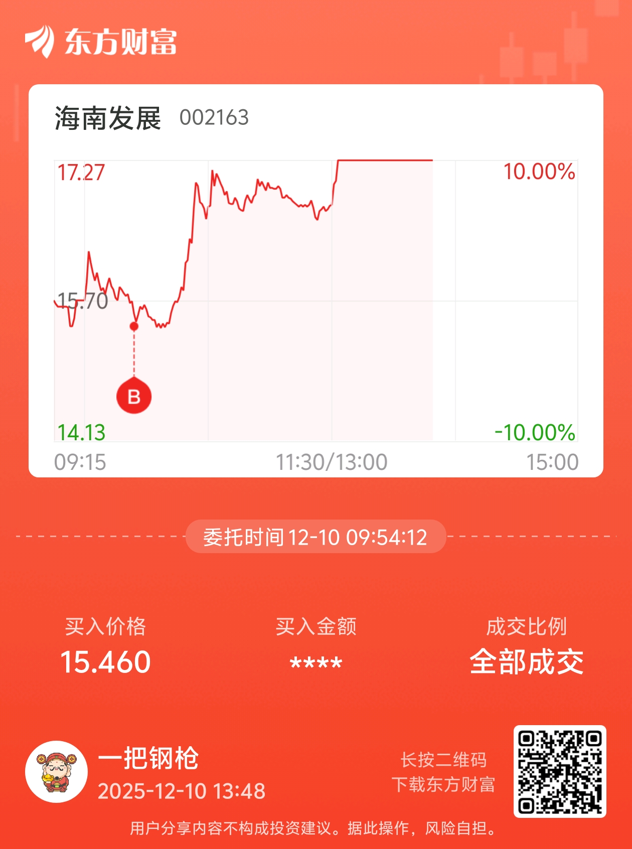 $海南发展(SZ002163)$ 今天这操作可以,小帅