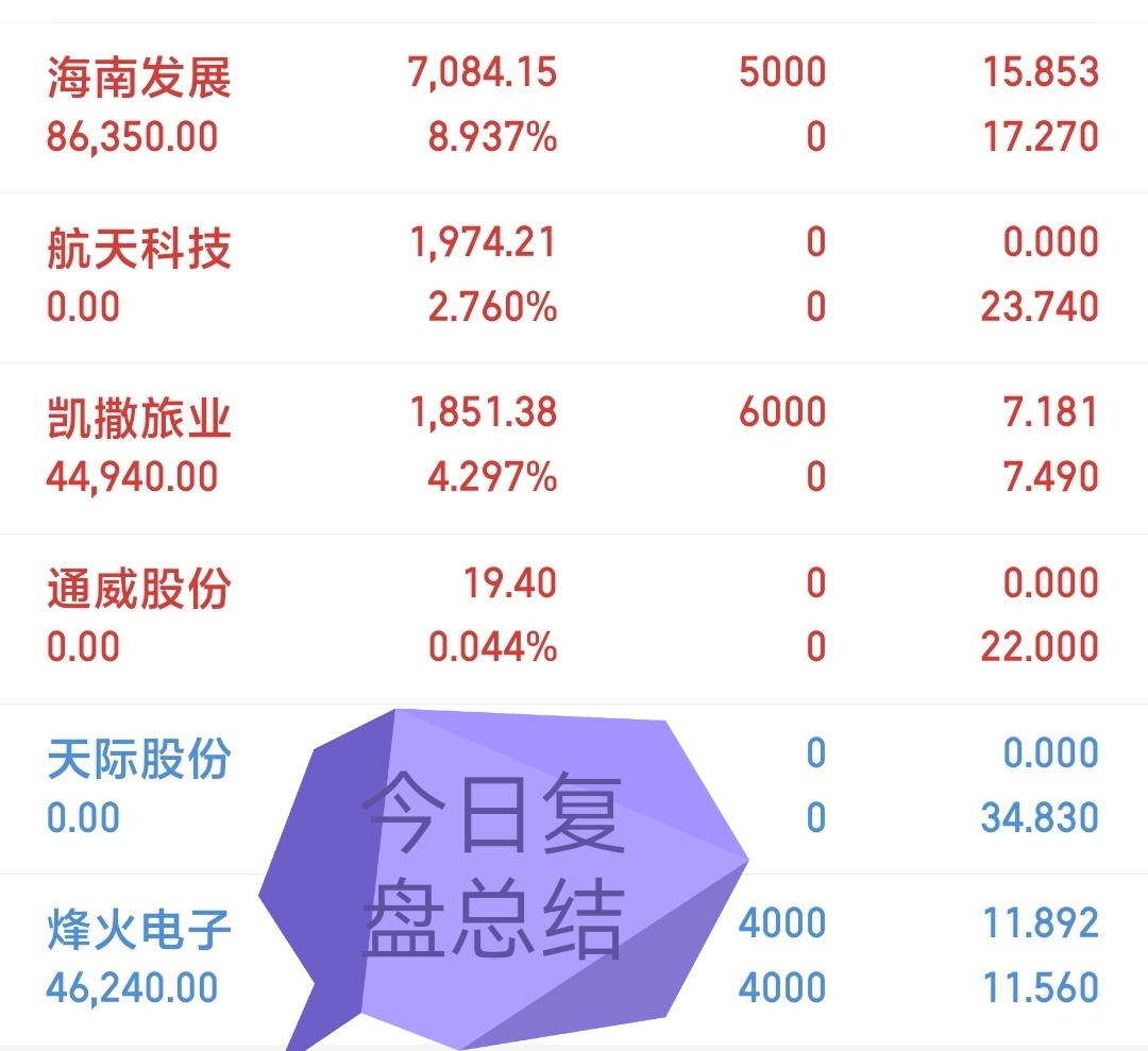 今日复盘总结:航天科技,通威股份,烽火电子,天际股份今日动态:航天科技,通威股份