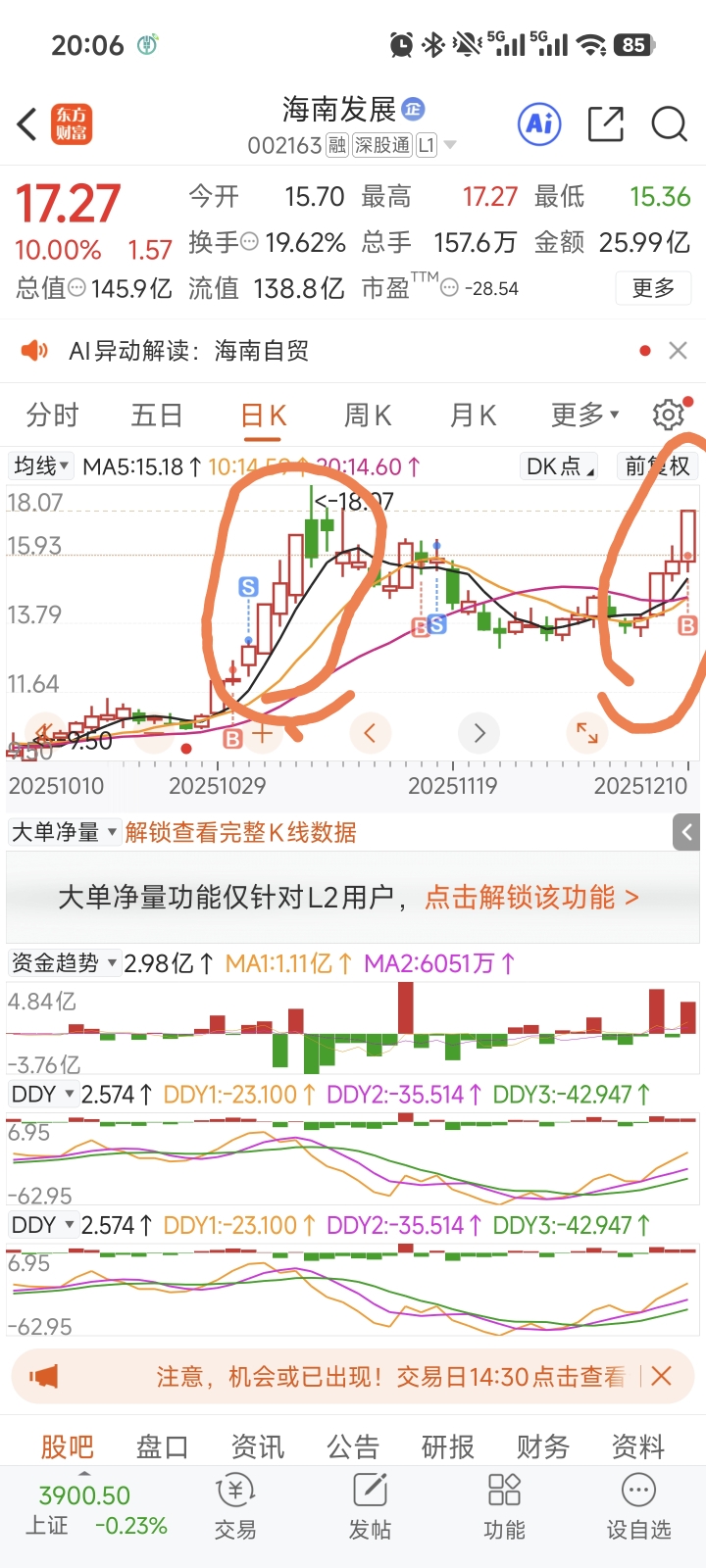$海南发展(SZ002163)$ 走势几乎是一样的,明天大概率会到18块,如果超过18块就留,没过18就赶紧走!!明天不跌,后天也会跌的!!!过了18就进,没过就跑!!海南封关的消息早就出来了,要抄也是提前,不会到这个节骨眼上再吵!封关时间一过,利好兑现!!