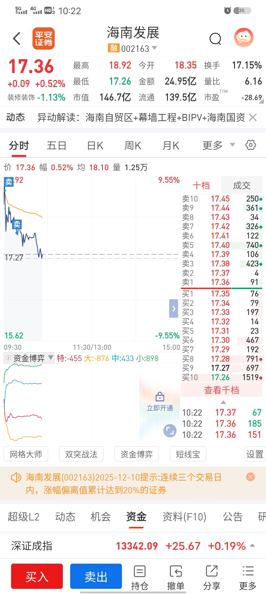 $海南发展(SZ002163)$ 今天全部清仓了,量化砸盘。