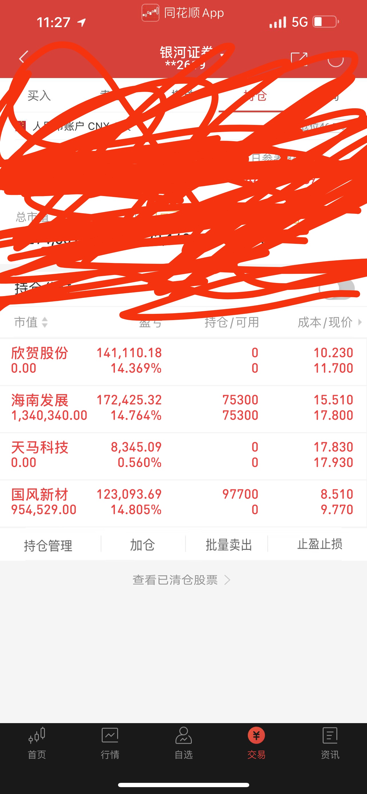大家上午好,更新一下今日持仓,新的一天一起加油早上给欣贺股份和天马科技给止盈出局