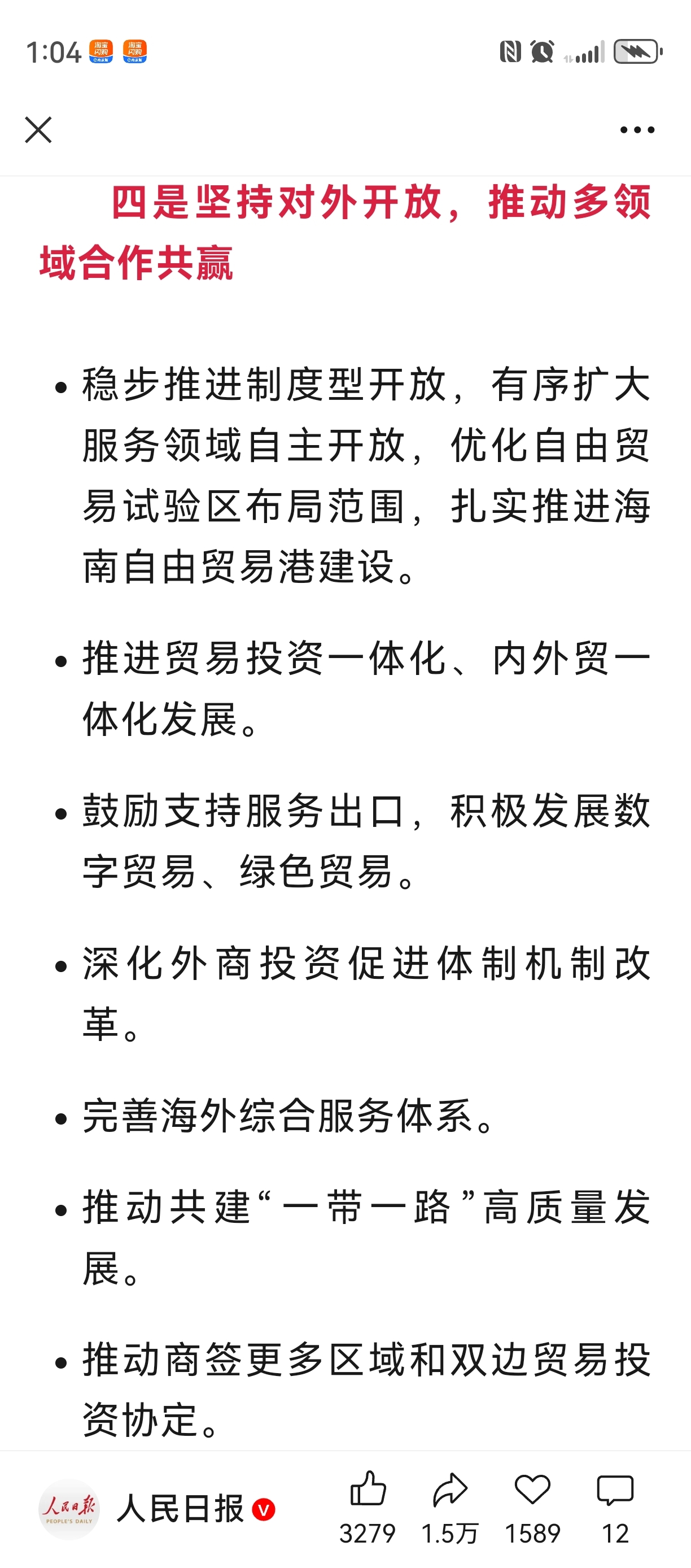 $海南发展(SZ002163)$ 人民日报发出来的十五五第4点扎实推进海南自由贸易港建设,新高开启