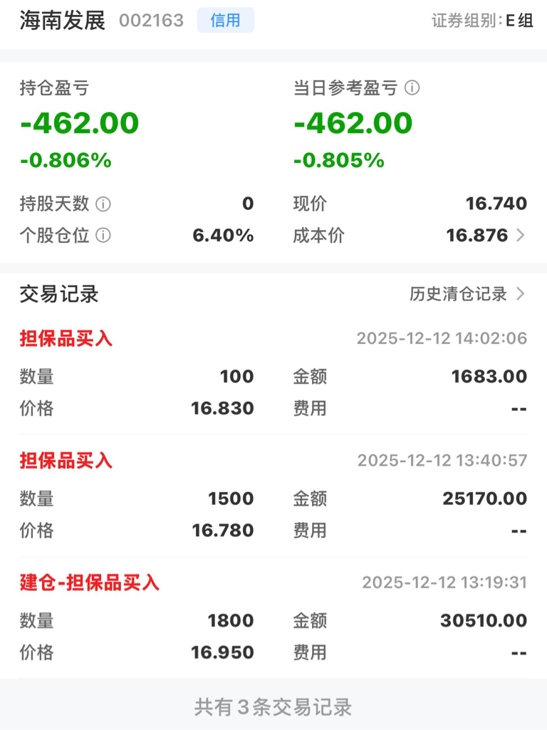 今日开仓海南发展,坚定看好。我的幸运数字是4所以特意的补了100股。