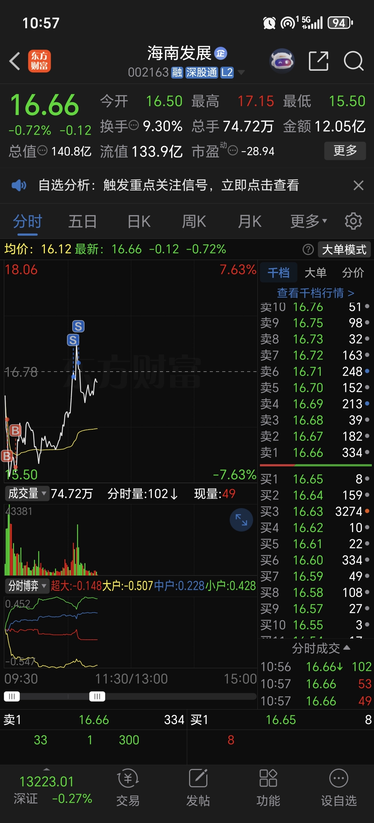 $海南发展(SZ002163)$ 继续继续做差,成本9.98