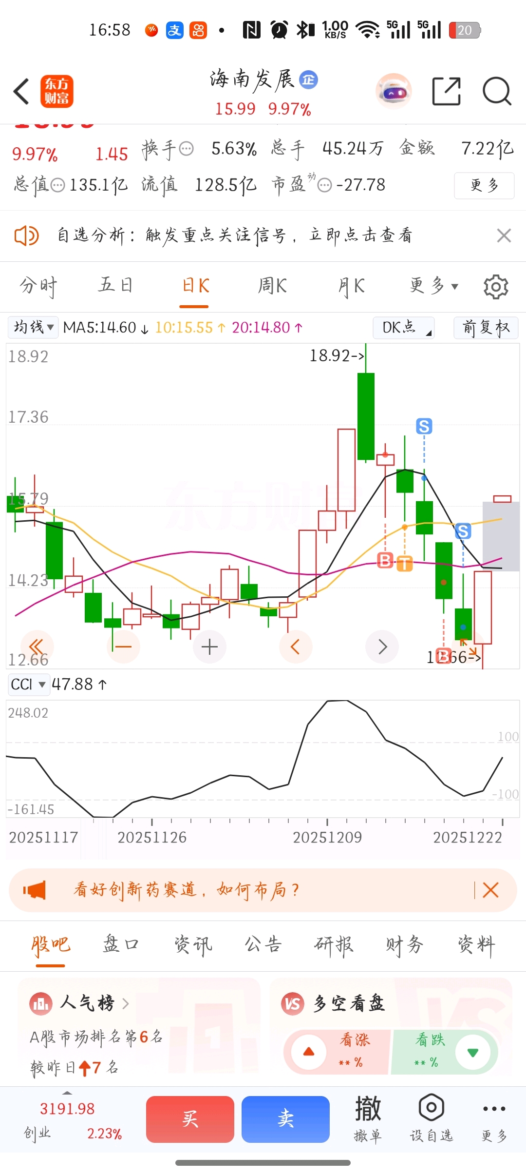 $海南发展(SZ002163)$ 拿了五天跌一天我就抄,亏了8个点割肉了,主力你牛批,你这暴力洗盘确实是拿不住,直接拉2个板