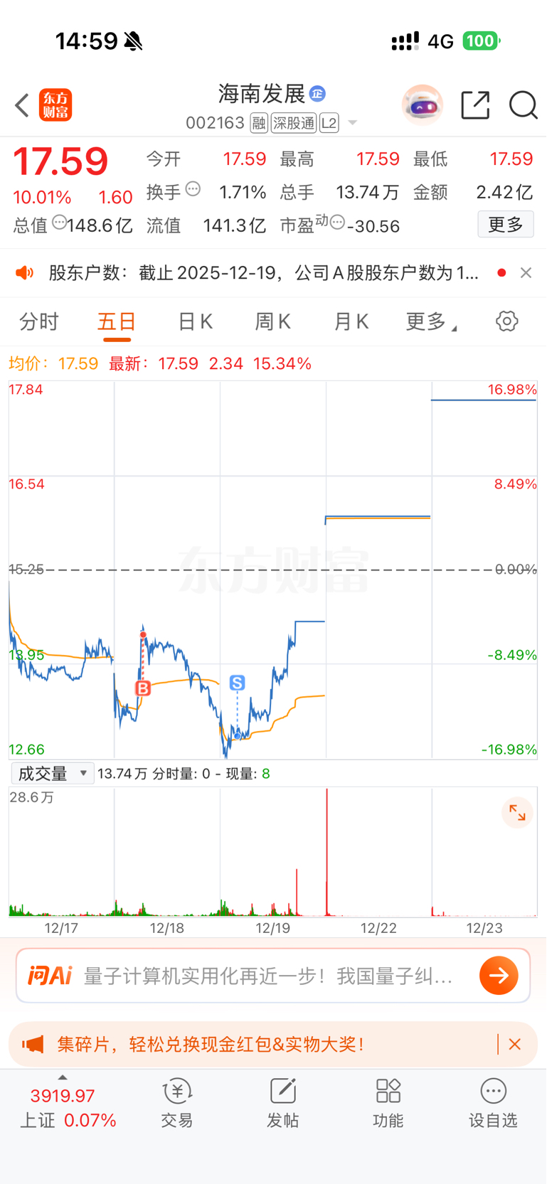 $海南发展(SZ002163)$ 吃,30个点浪费掉了