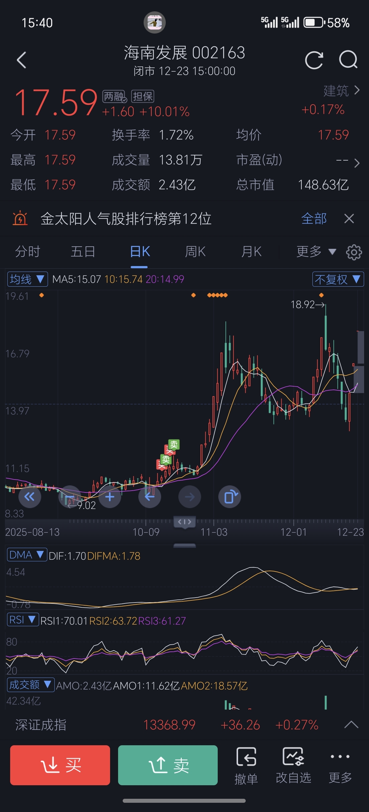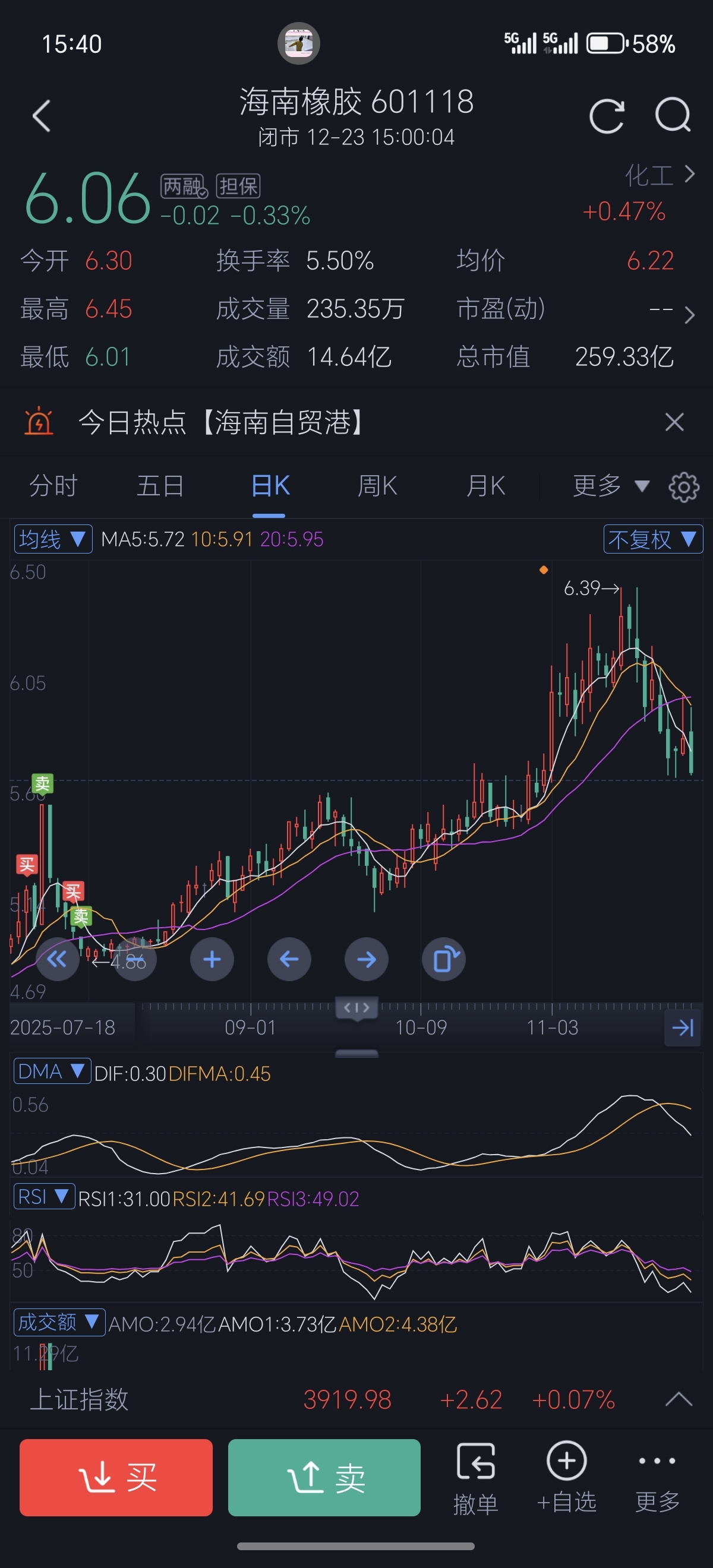$海南发展(SZ002163)$ $海南橡胶(SH601118)$ $海南瑞泽(SZ002596)$ 我该说什么,买的每一只票拿在手里不涨一段时间后直接起飞,看一下交割单每一支票都已经翻倍,常山北明11买十二卖一路涨四十二波也没吃到