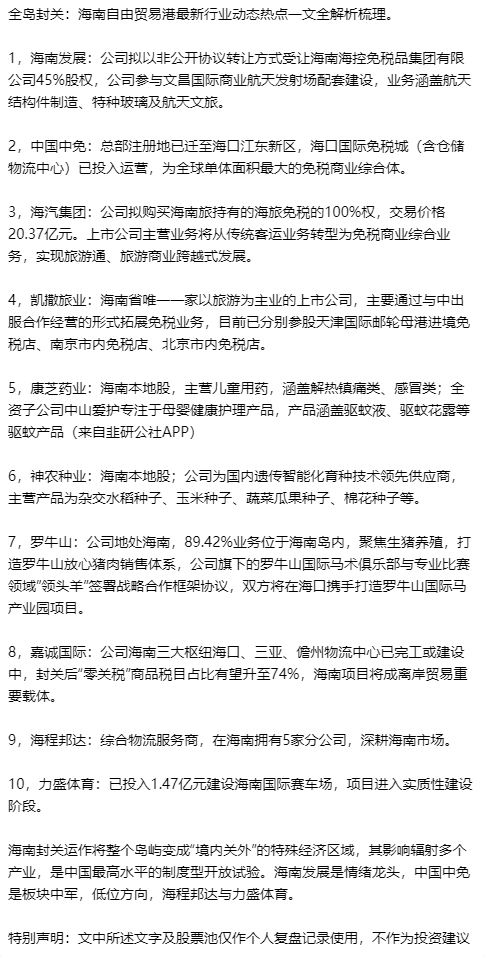 全岛封关:海南自由贸易港最新行业动态热点一文全解析梳理。