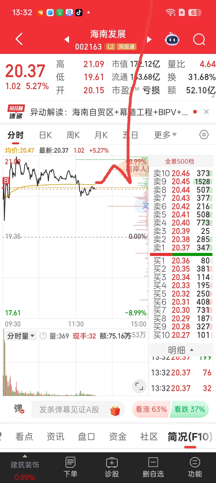 $海南发展(SZ002163)$ 今日走势已画,仅供参考,