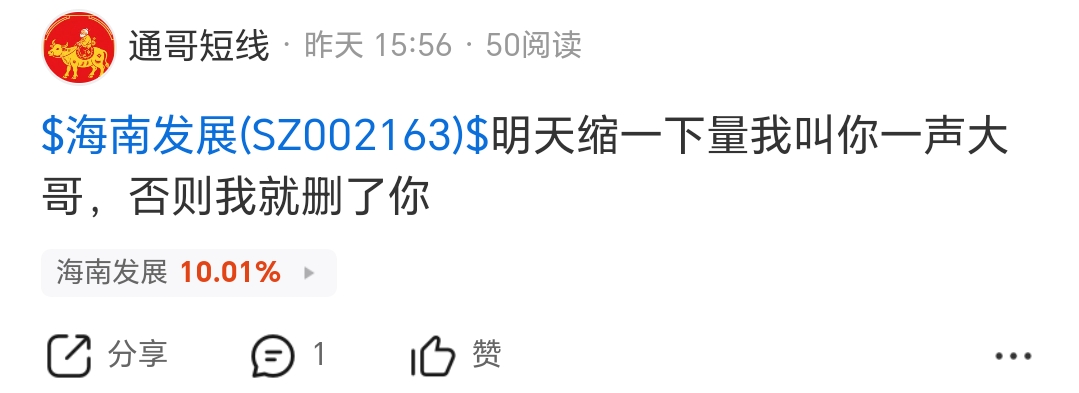 温馨提示: 1.根据《证券法》规定,禁止编造、传播虚假信息或者误导性信息,扰乱证券市场;2.用户在本社区发表的所有资料、言论等仅代表个人观点,与本网站立场无关,不对您构成任何投资建议。用户应基于自己的独立判断,自行决定证券投资并承担相应风险。《东方财富社区管理规定》