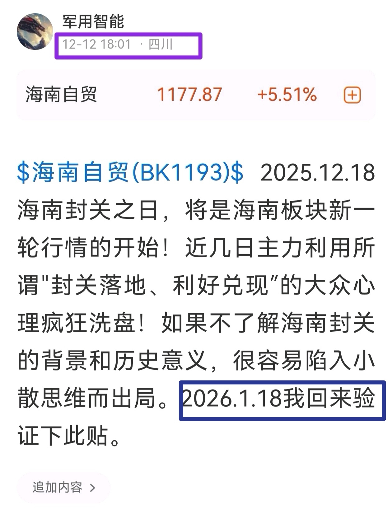 By the way,海南发展不需要我1.18回来验证了
