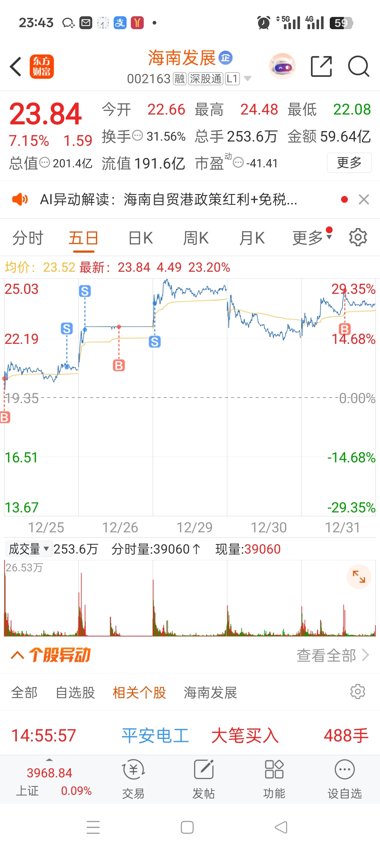 $海南发展(SZ002163)$ 前面第一波赚钱出来的,今天看到走的挺强的,板块拉升的时候海南发展瞬间拉板,马上挂单买入,结果被砸了下来,不过问题应该不大,下周还是要继续向上走的