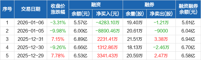 海南发展:融资净偿还4283.1万元,融资余额5.57亿元(01-06)