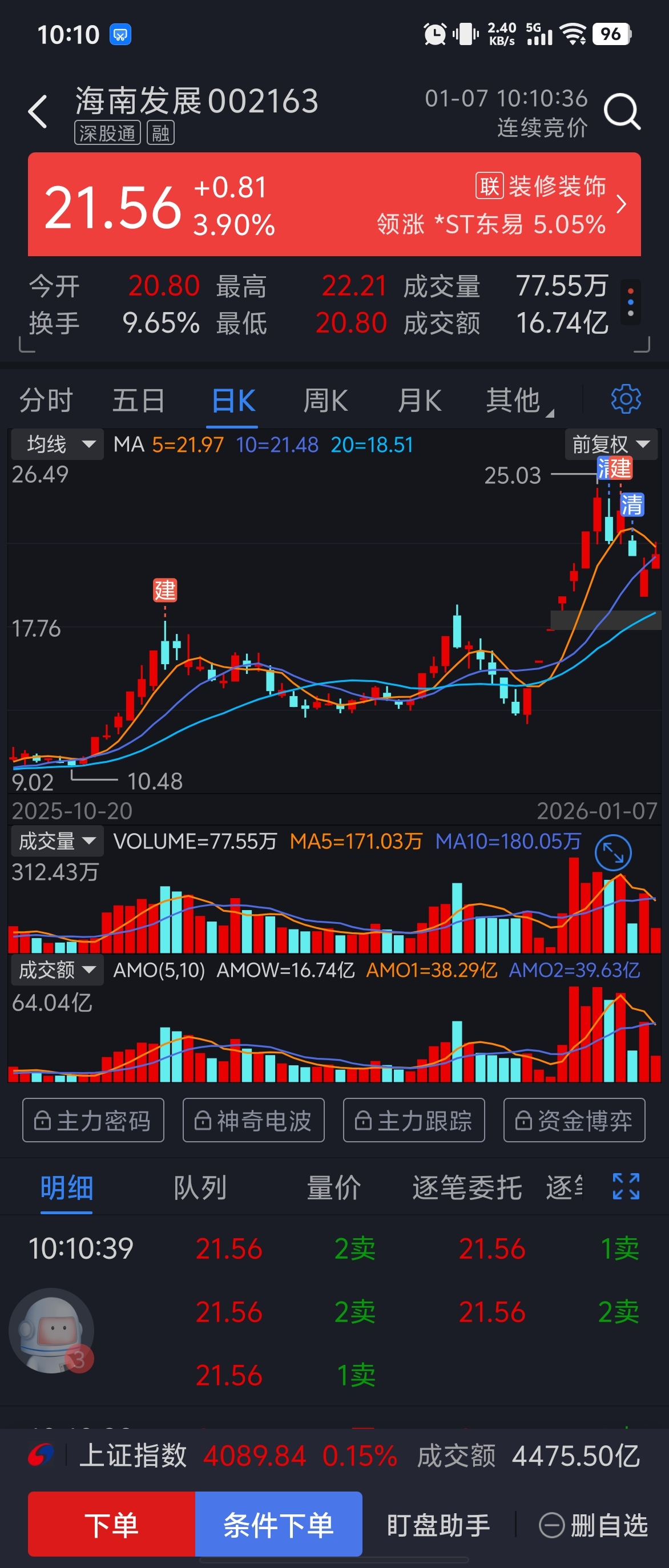 我是看好海南发展的目标价起码30元!我是17.17买入的,持股一度跌破13元亏到自闭!但我坚定持股去到23.17清仓卖了,隔天怕卖飞又买进赚了4个点,元旦回来直接低开7个点按跌停!倒亏5个点!地板跑出...这波我看跌17元左右再买入不着急,卖飞就卖飞了