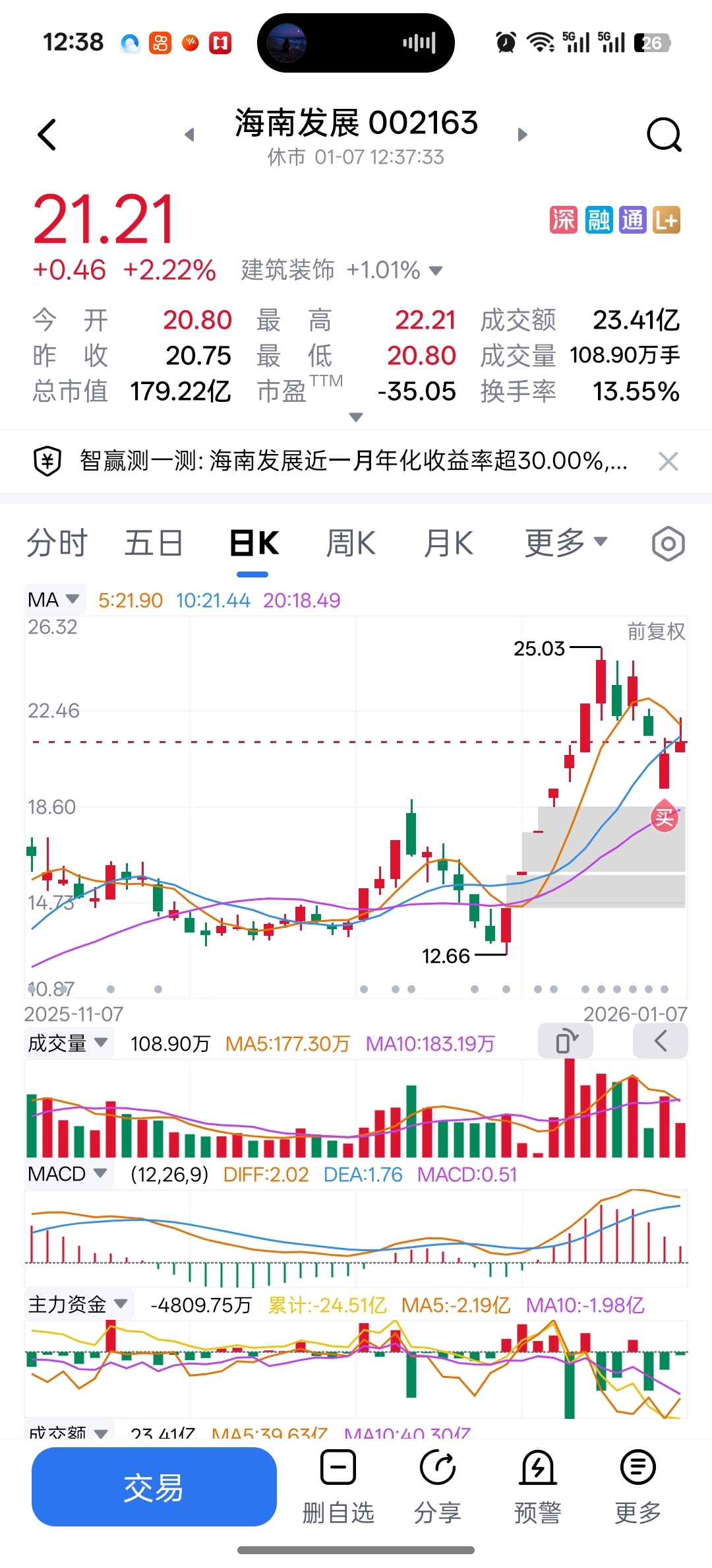 $海南发展(SZ002163)$ 落差有点大,昨天抄底冲着涨停来的,主力发力啊
