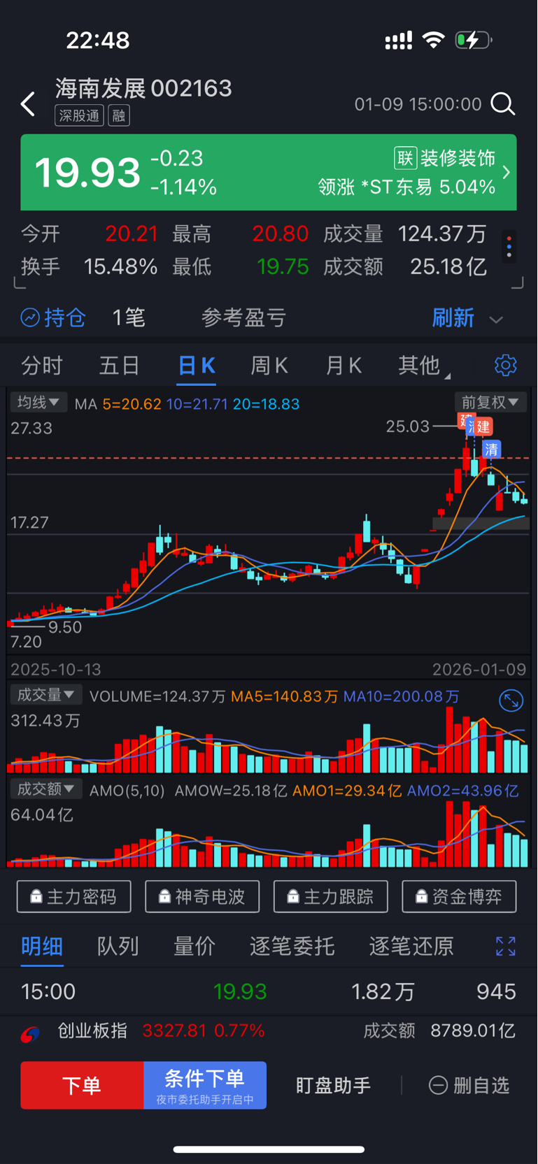 $海南发展(SZ002163)$ 你亏了我 一年收益,买两次亏了18个点