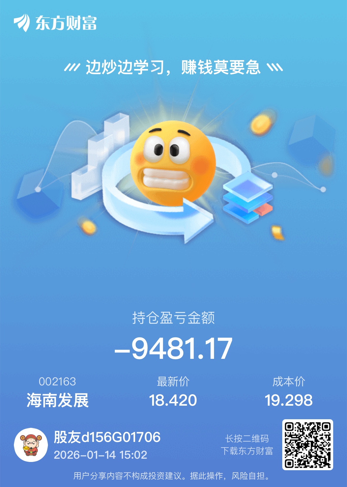 温馨提示: 1.根据《证券法》规定,禁止编造、传播虚假信息或者误导性信息,扰乱证券市场;2.用户在本社区发表的所有资料、言论等仅代表个人观点,与本网站立场无关,不对您构成任何投资建议。用户应基于自己的独立判断,自行决定证券投资并承担相应风险。《东方财富社区管理规定》