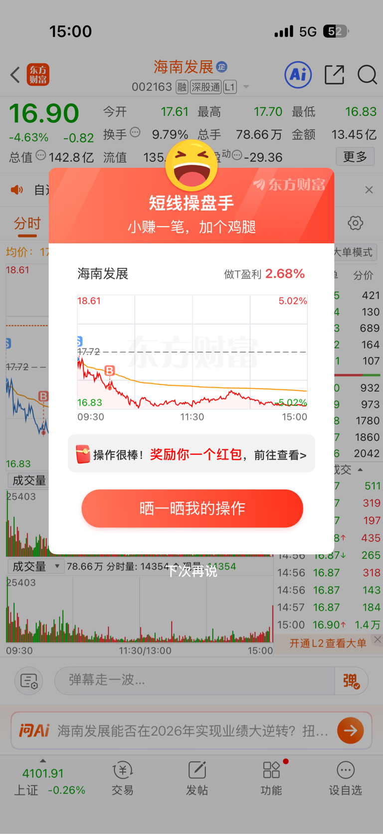 $海南发展(SZ002163)$ 周一直接卖,一点意思没有