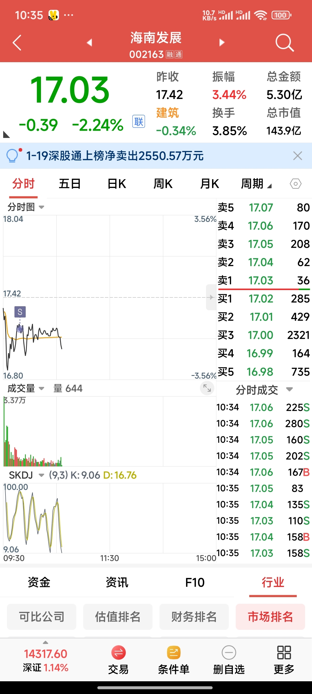 $海南发展(SZ002163)$ $德恩精工(SZ300780)$ 海发早盘17.21割肉清仓,毫无反弹,趋势不对立刻就跑,不要留恋,严格按照计划执行,本来昨天买入是赌反弹的,结果昨天来了个大阴线,早盘大盘涨海发还是跌,不符合预期,买回德恩,德恩的趋势挺好的,早盘洗一波就旱地拔葱吧,今天继续破新高