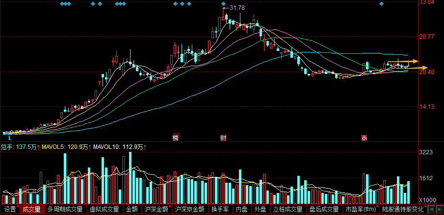 神剑股份:今天延续弱势表现,直接一字跌停,目前已经两连跌。盘中接力很弱,封单量还不小,主力也是持续流出的状态,MACD量能红柱大幅缩短,上涨动力非常疲软。整体趋势有继续走弱的可能,就看后续什么时候能有接力紫金。目前可以看看20日均线位置能不能形成承接,继续观察。
