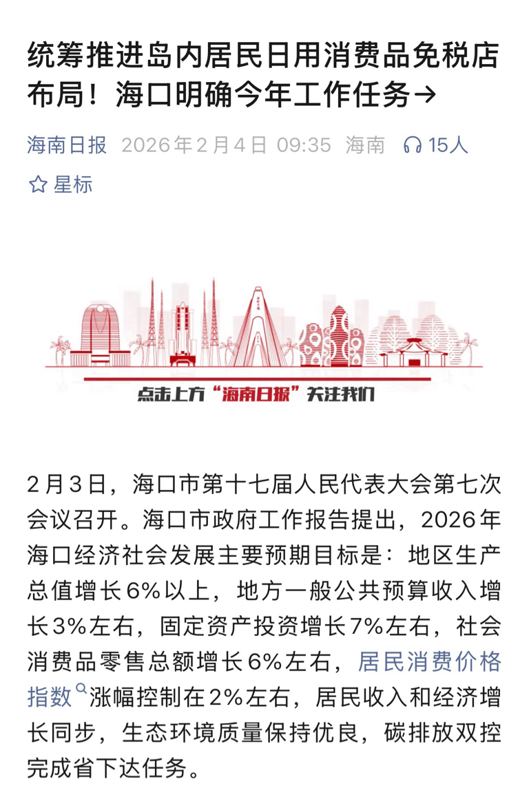 $海南发展(SZ002163)$ 岛内居民日用消费品免税店来了