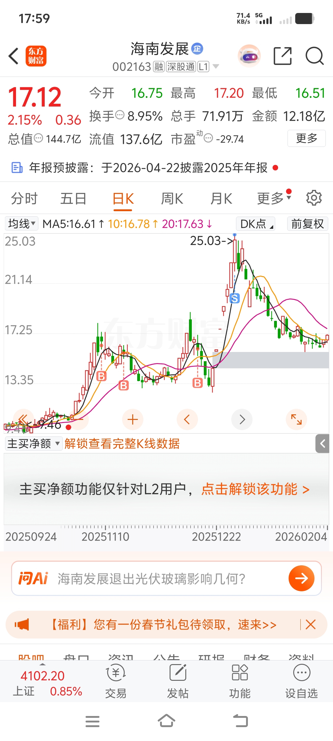 $海南发展(SZ002163)$ 什么时候可以再进?