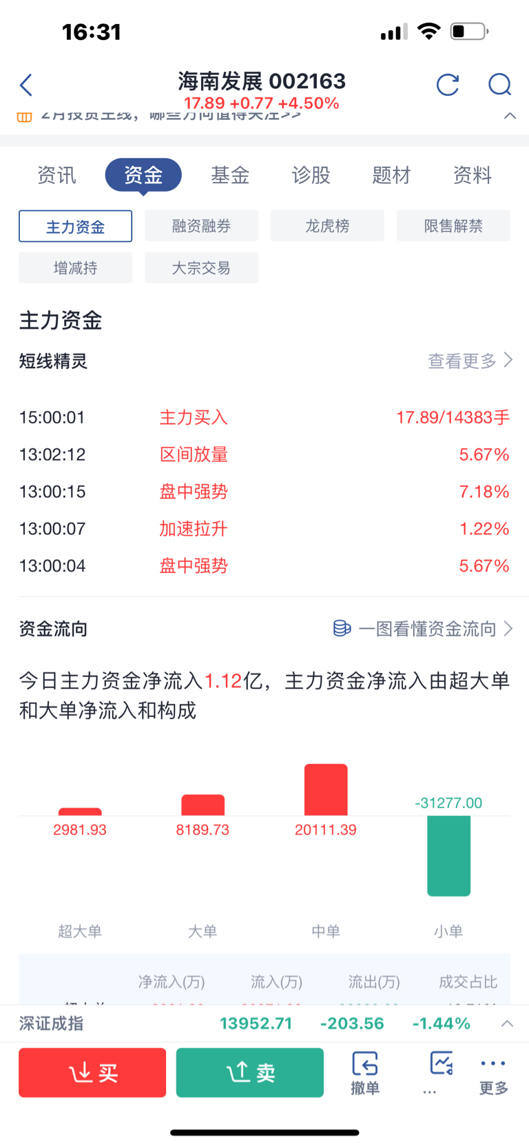 $海南发展(sz002163)$ 这个资金进去的也不少?