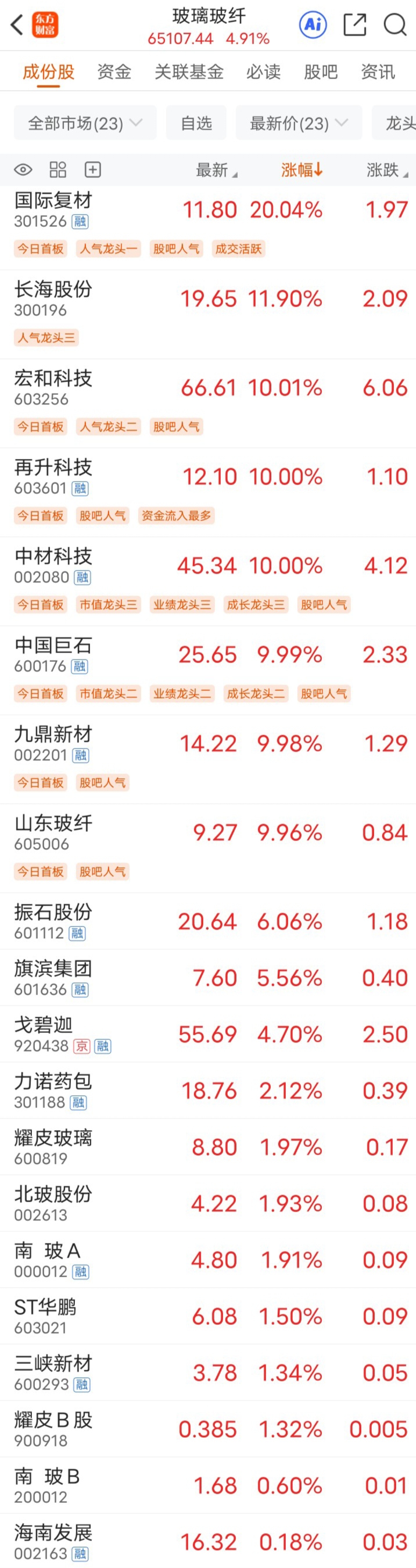 $海南发展(SZ002163)$ 上午,玻璃纤维板块飚涨,20厘米,10厘米,涨停。海南发展,就是地地道道地蜗居于玻璃纤维板块的,上午在板块里面,位于第19名。
