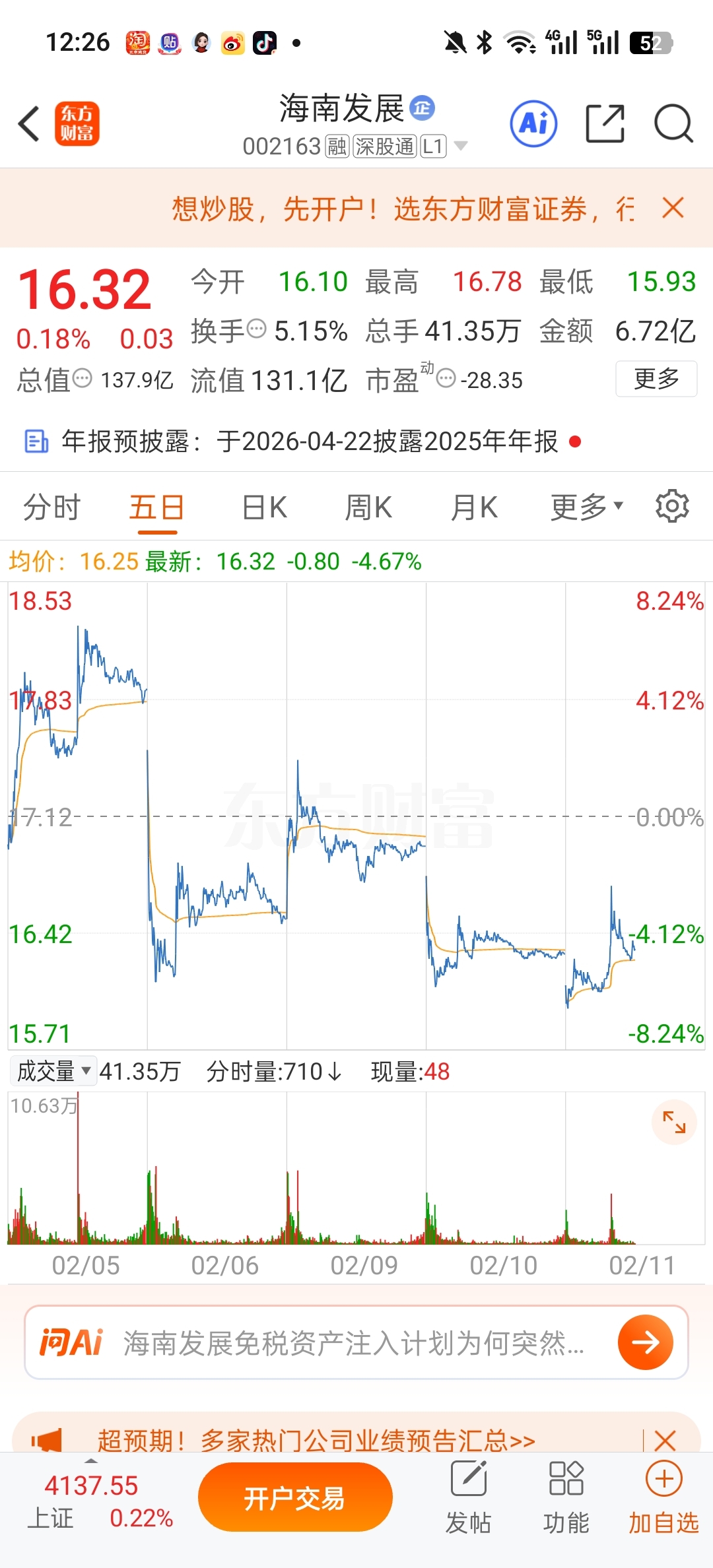 $海南发展(SZ002163)$ 每次拉伸都是为了出货,主力成本10元