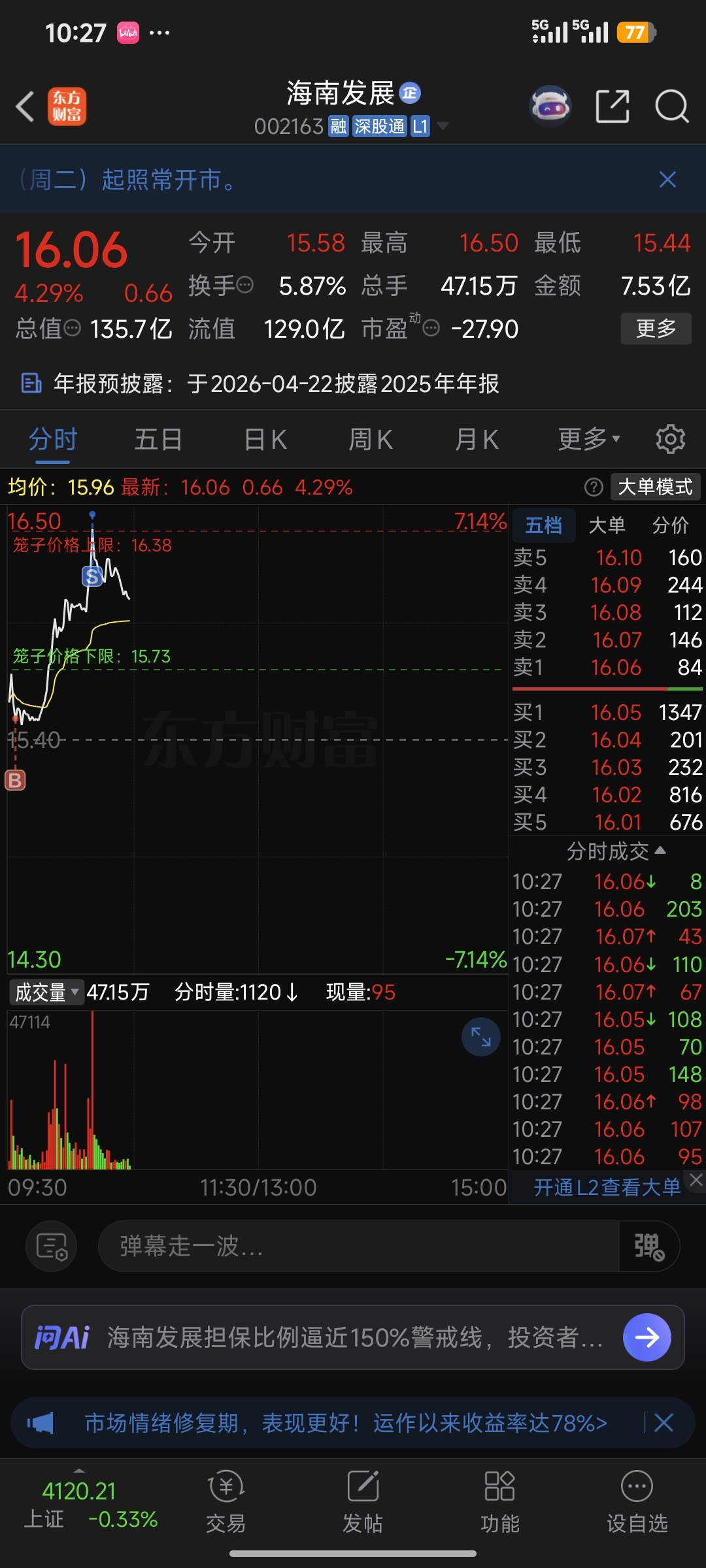 $海南发展(SZ002163)$ 砸四你主力