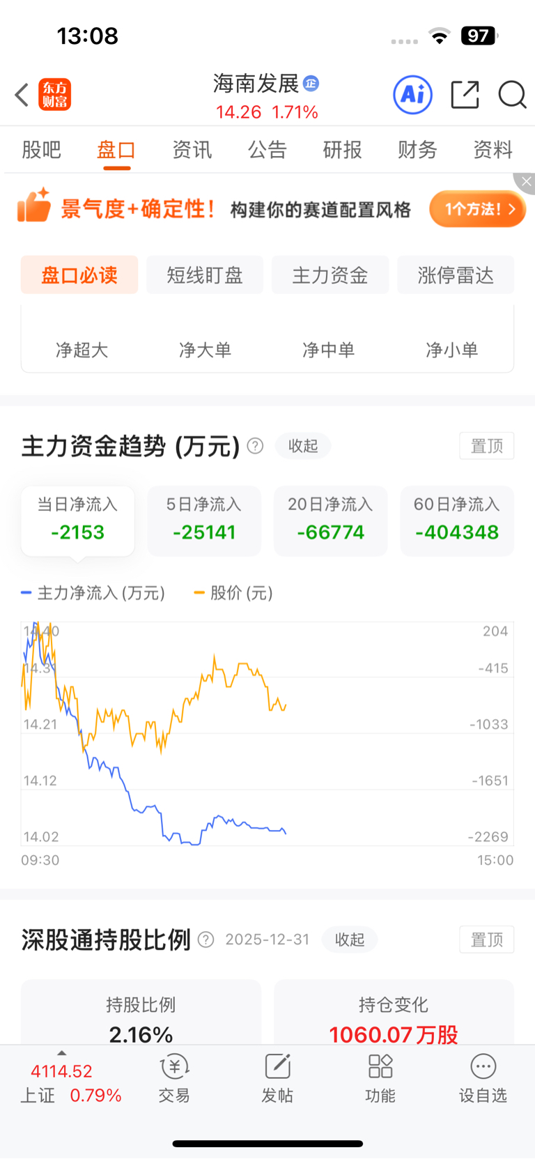 $海南发展(SZ002163)$ 近60日流出40多个亿,这不是卖公司是啥