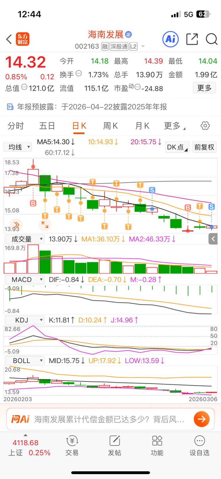 $海南发展(SZ002163)$ 今天出了,上午都过不了昨天高点,难道下午能过吗