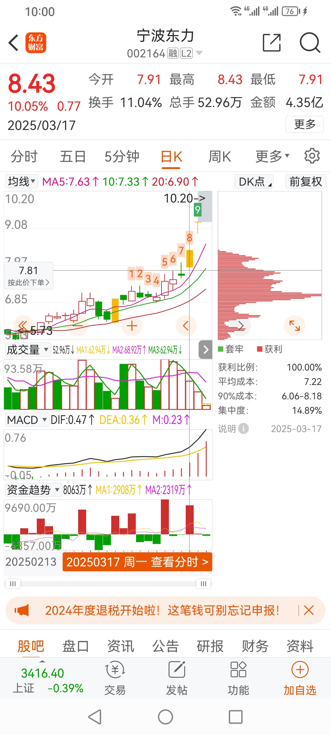 $宁波东力(SZ002164)$ 军哥 今天 涨停板 出了 没有放量 可以坚持一天。如果跳水 割股。#炒股日记#